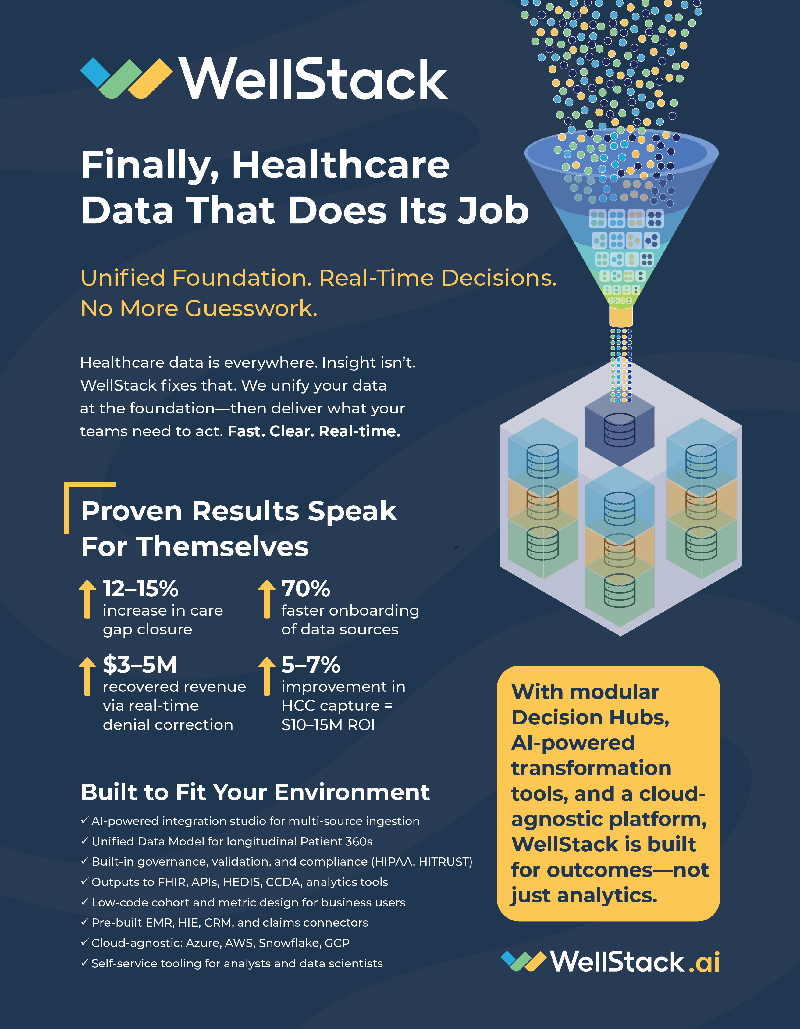WellStack offers healthcare organizations a modern, out-of-the-box data ecosystem that creates a single source of truth necessary for enterprise-wide decision-making.
